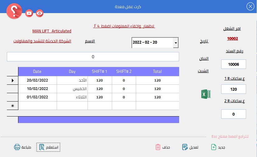 كرت عمل معدة