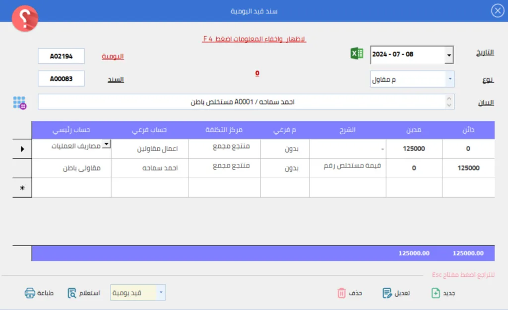 من خلال الضغط على F4 يوجد بعض الاوبشنات مثل طباعة قيود محاسبية حيث يتم تحديد بداية الطباعة والنهاية عن طريق اختيار ارقام القيود